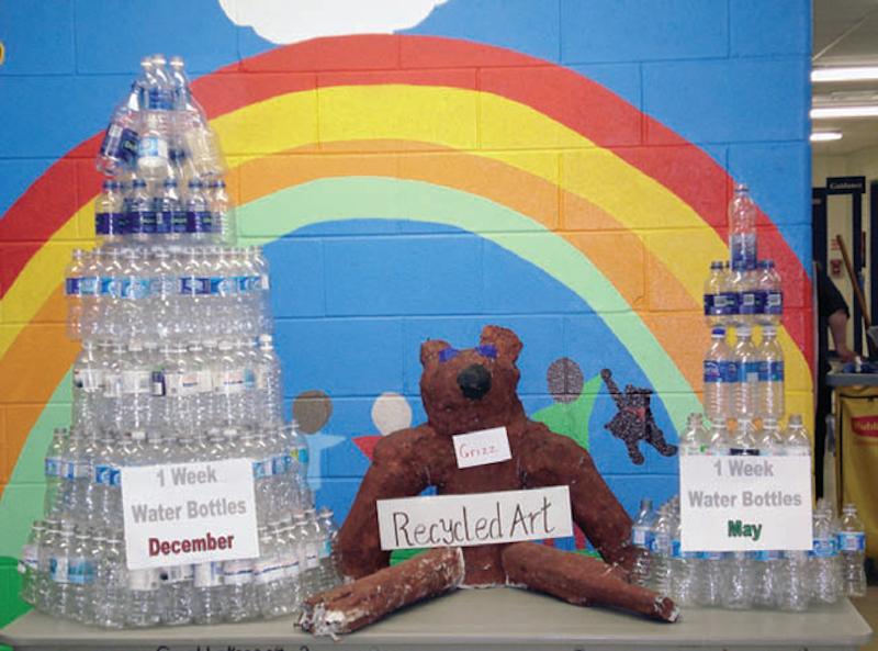 Inspired by a presentation at an EcoConference put on by the board, students created and implemented a campaign to reduce the number of single-use water bottles brought to school over the course of the year. Students completed audits and saw significant results: by the end of the year the number of water bottles put into recycling bins had dropped from 250 to 60. Students sold Great Lakes reusable water bottles, and created before/after water bottle sculptures and graphs of their audits, which they posted in the hallway. Ongoing monitoring and school-wide feedback helped them succeed.