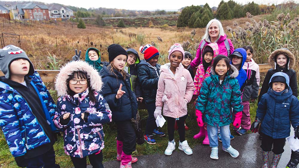 Perched atop the Oak Ridges Moraine, the school overlooks forested trails that call students outdoors to explore, question and connect. In these daily nature walk interactions, they are beginning to form the very relationships Potawatomi botanist and author Robin Wall Kimmerer describes; ones of care, curiosity and belonging to the land and to one another.